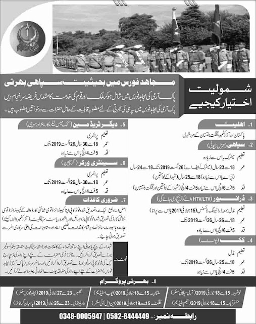 Join Pak Army Mujahid Force June 2019 as Soldier