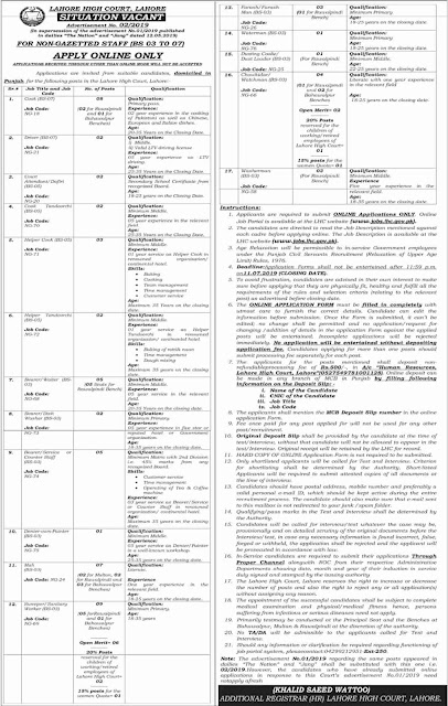 Lahore High Court (LHC) Jobs 2019 Apply Online Application Form Download