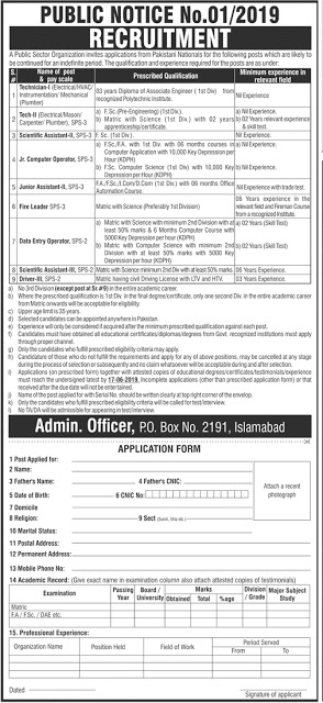 - Interested candidates apni filled application kay sath educational degrees ki attested copies/Certificates aur experience iin kay address Sr. Admin Officer, PO Box No 2191 Islamabad pay send kar dain.
