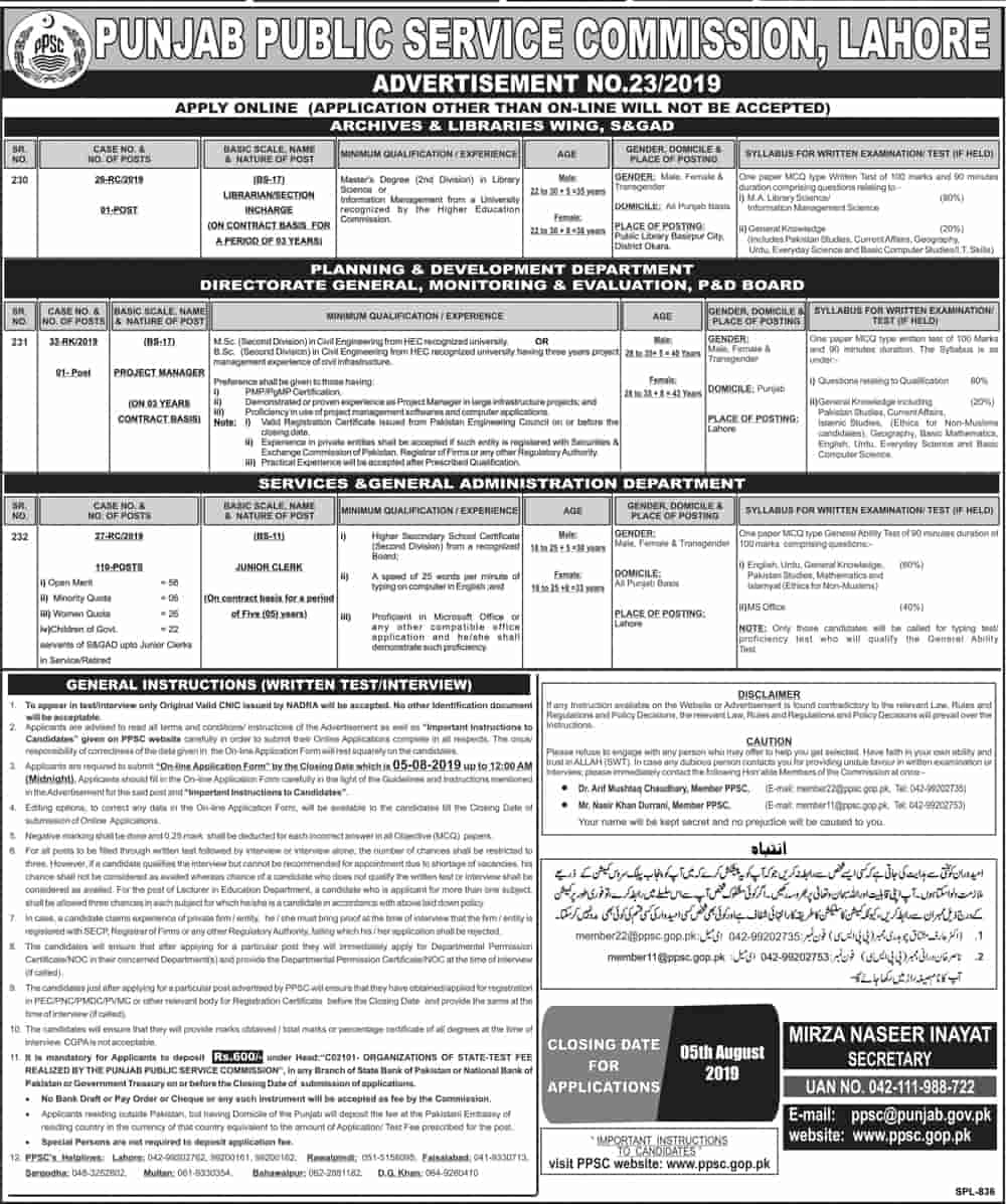 Punjab Public Service Commission PPSC Jobs 2019 Apply Online www.ppsc.gop.pk