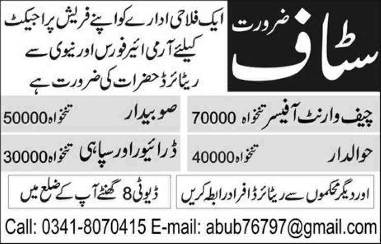 Friends Social Welfare Organization Jobs 2019 For Chief Warrant Officer, Subedear, Havildar, Driver / Sipahi (July 2019) has been announced today. This job is for retired defense forces candidates. Handsome salary packages will be given to the selected candidates. Retired Chief Warrant Officer, Sobidaar, Havildar, Driver, and Sepaee are eligible to apply for this job.