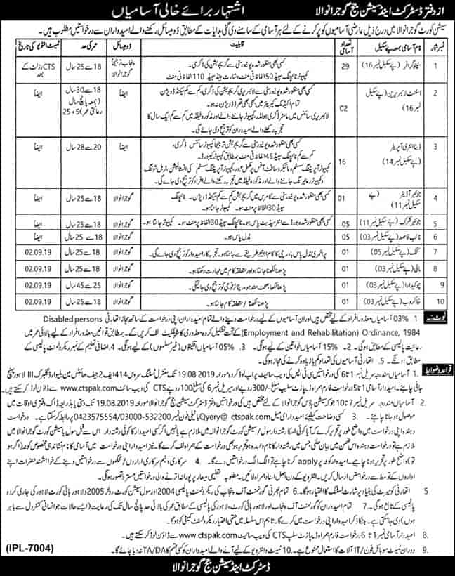 CTS Jobs In District & Session Judge Gujranwala Online Form