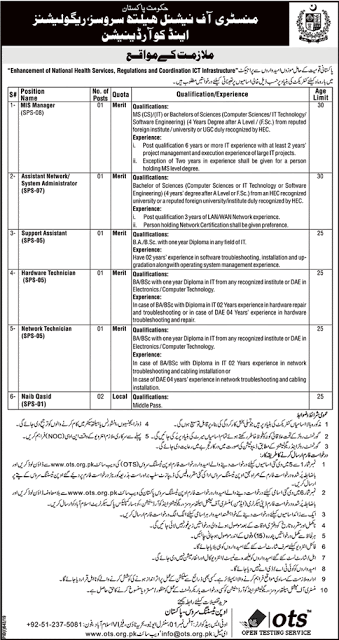 Ministry of National Health Services Jobs 03 August 2019 Form download
