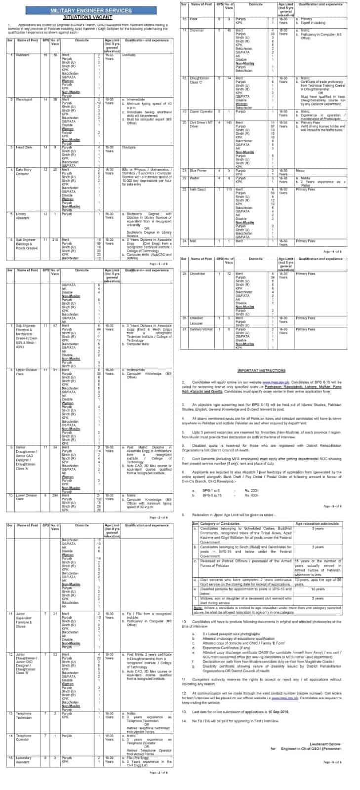 - Interested candidates may apply MES Jobs 2019 online on application form available at MES official website www.mes.gov.pk.