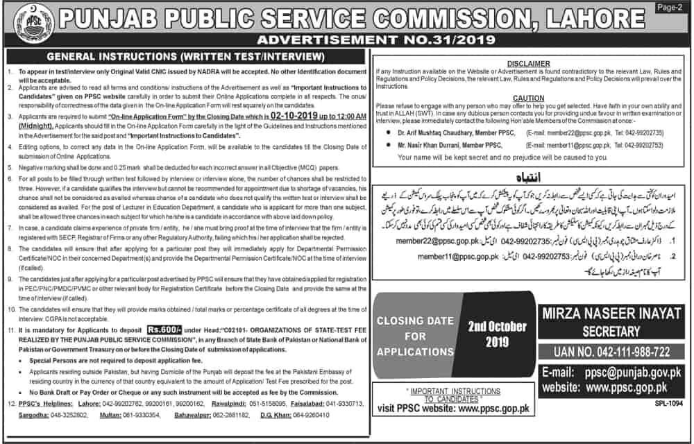 PPSC Jobs 2019 Advertisement No 31/2019 Punjab Public Service Commission Apply Online