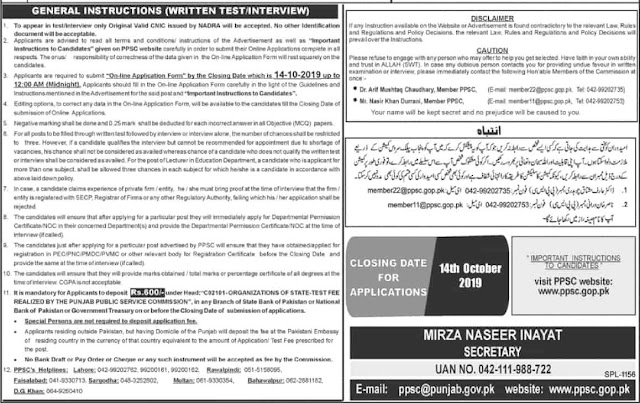 - Applicants must deposit test fee of Rs 600/- in favor of PPSC.