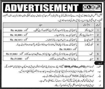 - Test and Interviews will start from 12 to 15 November 2019NLC Headquarters Rawalpindi.