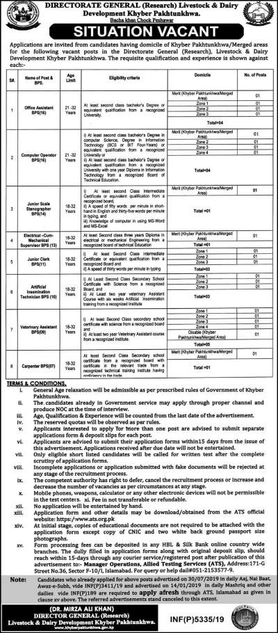 Livestock and Dairy Development Department Govt of KPK Jobs 2020 Peshawar Advertisement