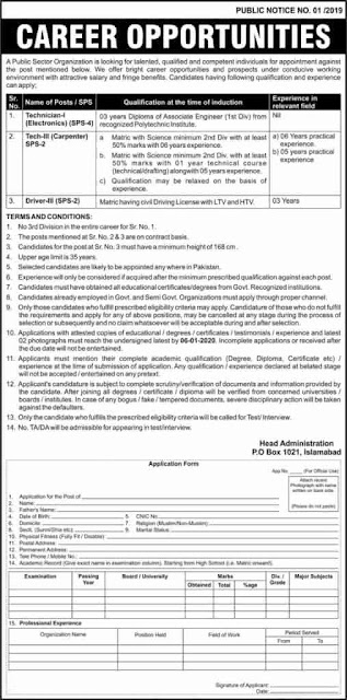 Applications along with attested copies of educational / degrees/ certificates/testimonials/experience and latest 02 photographs and send to address PO Box No. 1021 Islamabad.