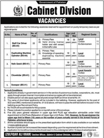 Cabinet Division Islamabad Jobs 2020 Government of Pakistan Latest Advertisement
