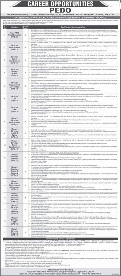 Pakhtunkhwa Energy Development Organization Jobs 2020 Application Form Download Online