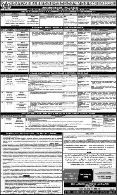 PPSC Jobs 2020 Advertisement 01/2020 Apply Online | ppsc.gop.pk