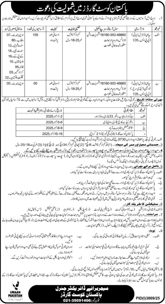 Pakistan Coast Guards Jobs 2025 Advertisement